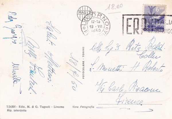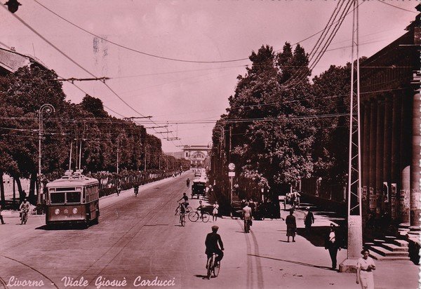 Cartolina Livorno - Viale Giosuè Carducci. 1950