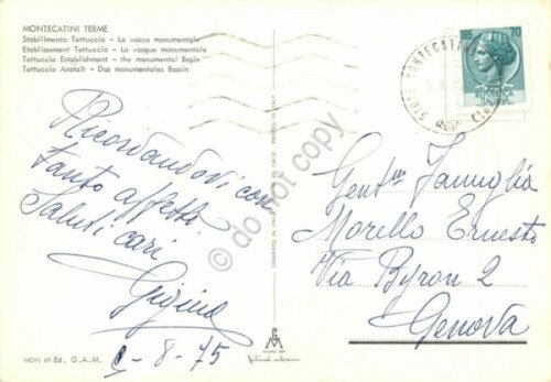 Cartolina Montecatini Terme Stabilimento Tettuccio Vasca monumentale animata '75