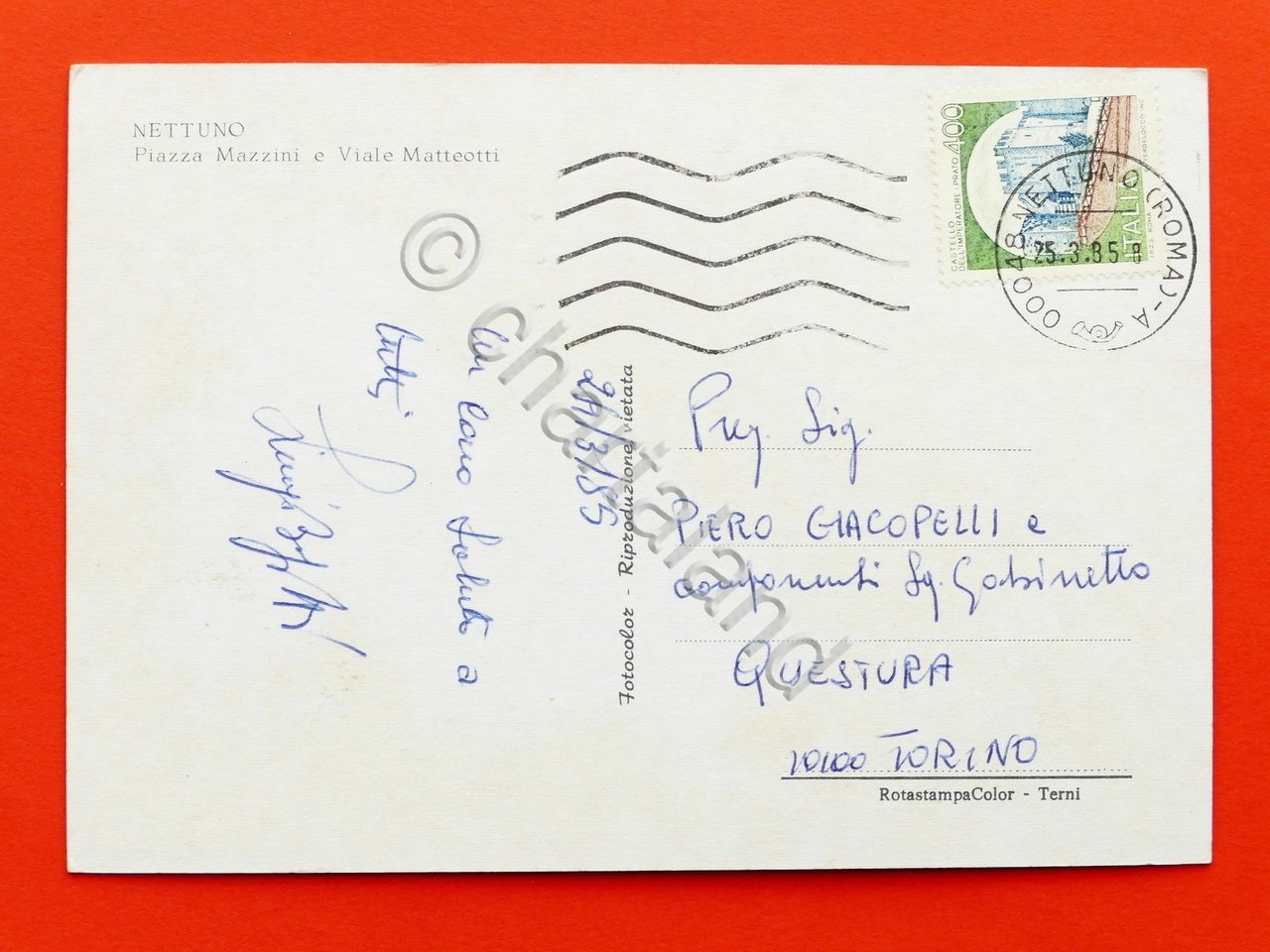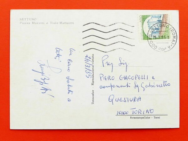 Cartolina Nettuno - Piazza Mazzini e Viale Matteotti - 1985 1985 Cartolina formato grande - viaggiata Condizioni buone, come da foto Per appassionati, studiosi e collezionisti