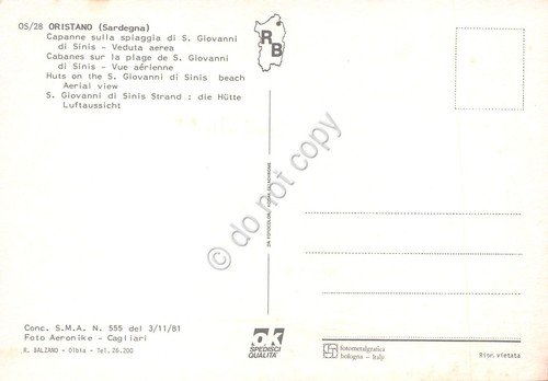 Cartolina Oristano S. Giovanni in Silis capanne sulla spiaggia veduta aerea