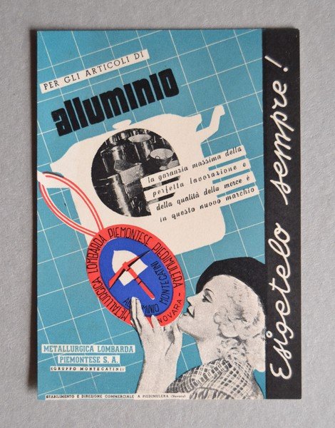Cartolina Per gli articoli di ALLUMINIO - Metallurgica Lombarda Piemontese S.A. (Gruppo Montecatini) NOVARA