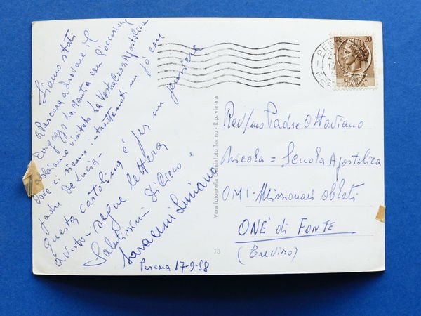 Cartolina Pescara - La Casa dove nacque il Poeta - 1958 1958 Cartolina formato grande - viaggiata Condizioni buone, come da foto. Piccola e lieve piega all'angolo superiore sinistro. Per appassionati, studiosi e collezionisti