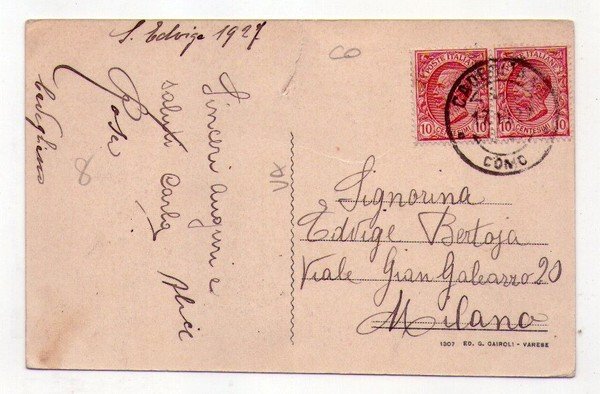 Cartolina/postcard Cadegliano (Varese) - Panorama con vista del Lago di Lugano e dei monti Svizzeri. 1927