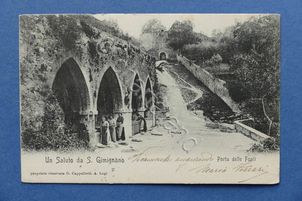 Cartolina S. Gimignano - Porta delle Fonti - 1904 1904 Cartolina formato piccolo - viaggiata Condizioni buone, come da foto Per appassionati, studiosi e collezionisti