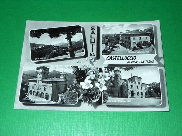 " *** Cartolina Saluti da Castelluccio di Porretta Terme - Vedute diverse. La cartolina non è viaggiata. Databile 1955 ca. Formato grande. Per appassionati, studiosi e collezionisti