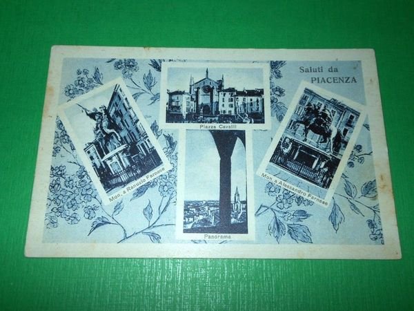 " *** Cartolina Saluti da Piacenza - Vedute diverse. La cartolina è viaggiata. Datata 1936. Formato piccolo. Per appassionati, studiosi e collezionisti