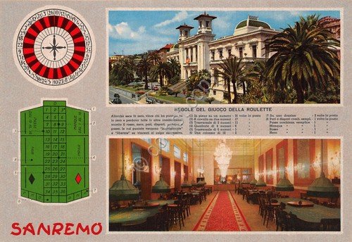 Cartolina Sanremo Casinò Regole della roulette anni '90