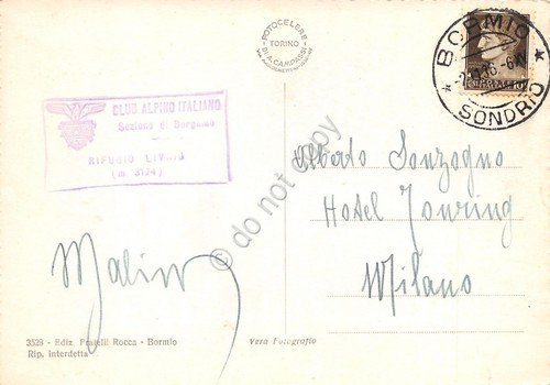 Cartolina Stelvio Gruppo Ortles dal Monte Madaccio 1936 timbro CAI Rifugio Livri