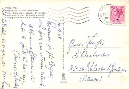 Cartolina Taranto Lungomare Vittorio Emanuele 1969