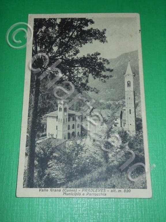 Cartolina Valle Grana ( Cuneo ) - Pradleves - Municipio e Parrocchia 1932.