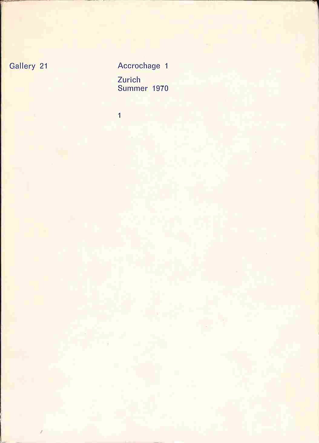 Gallery 21. Accrochage 1. Zurich, summer 1970