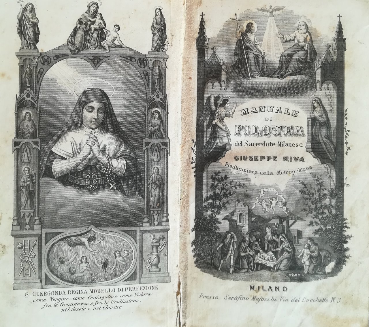 Copertina in piena tela molto usurata. Dorso mancante. Famosissimo manuale religioso, più volte citato da Umberto Eco. Raro. Mediocre (Poor) .