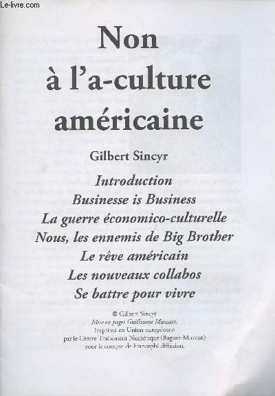 Non � l'a-culture am�ricaine