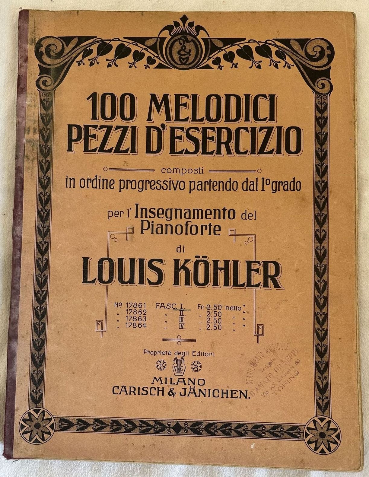 100 MELODICI PEZZI D'ESERCIZIO COMPOSTI IN ORDINE PROGRESSIVO PARTENDO DAL 1° GRADO PER L'INSEGNAMENTO DEL PIANOFORTE | Livres anciens et modernes | Louis Kohler