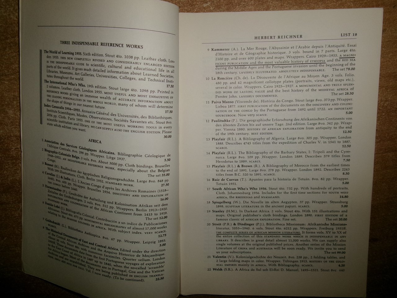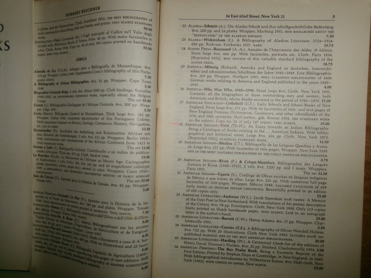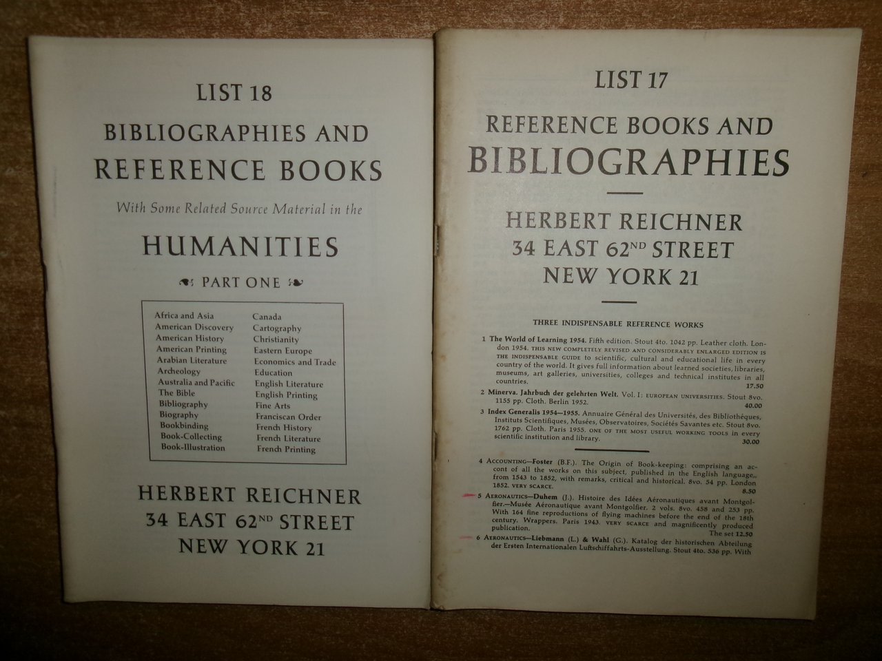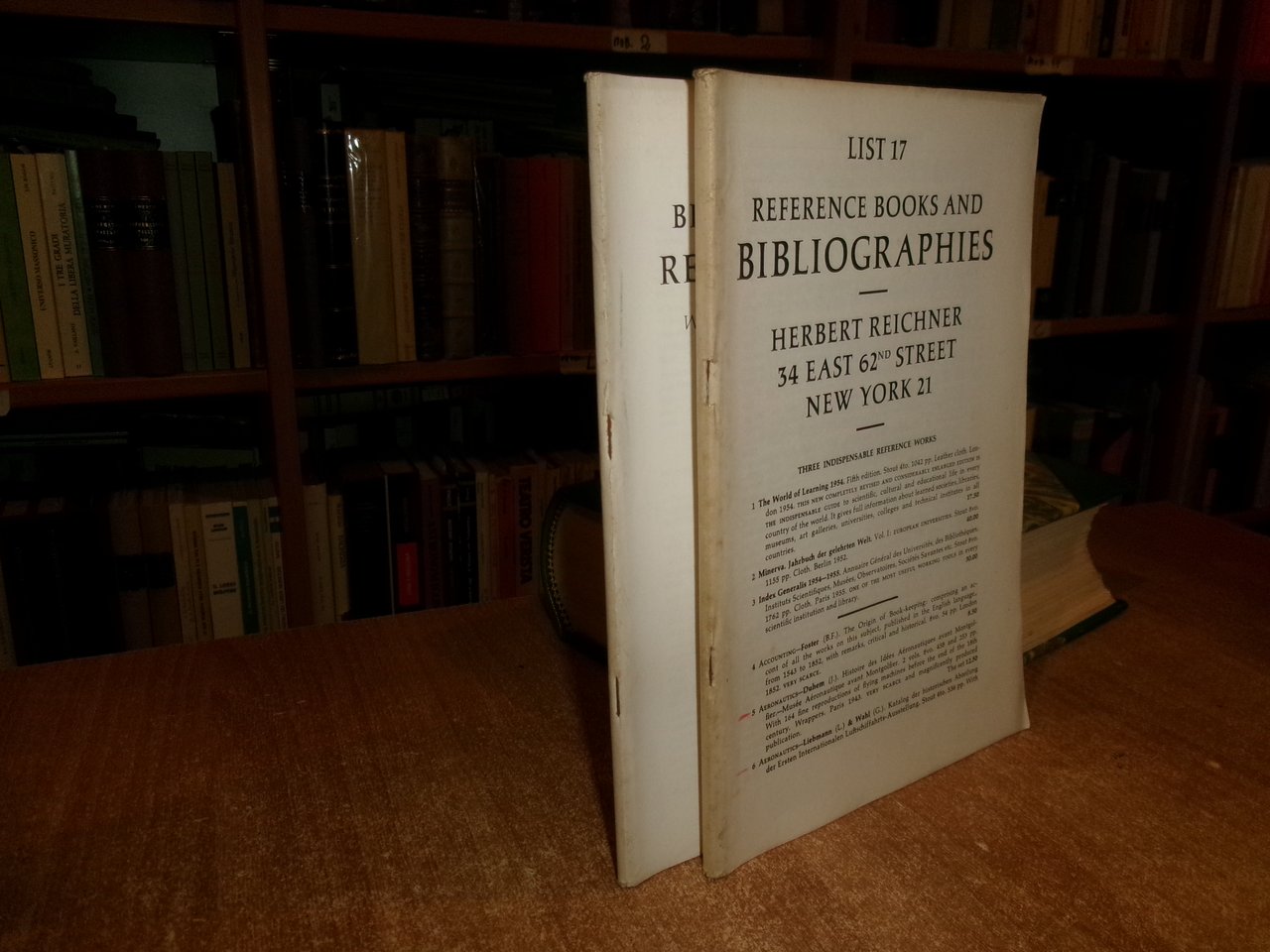 (2 cataloghi) Reference Books and BIBLIOGRAPHIES. HERBERT REICHNER c. 1952