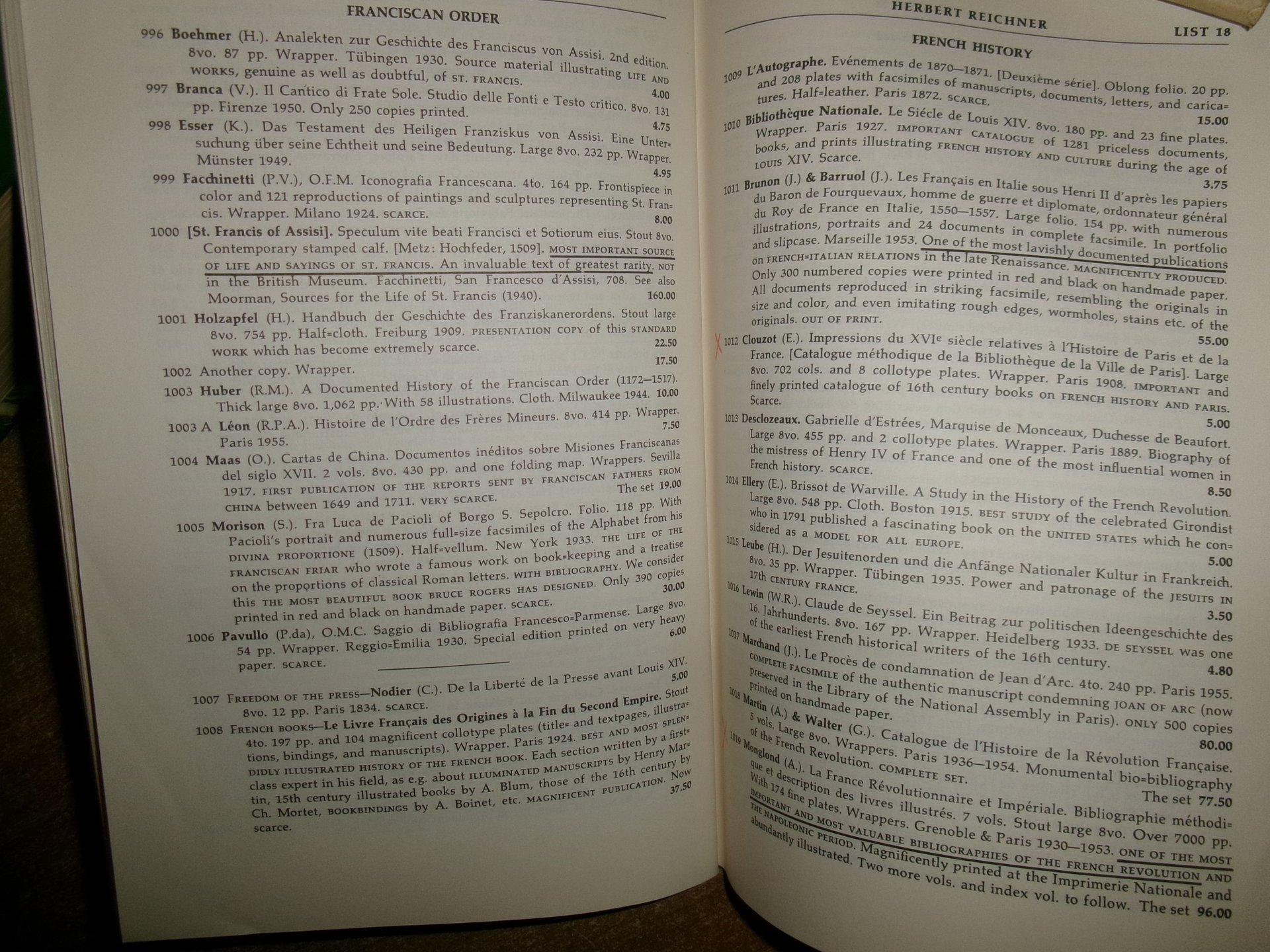 (2 cataloghi) Reference Books and BIBLIOGRAPHIES. HERBERT REICHNER c. 1952 | Livres anciens et modernes |