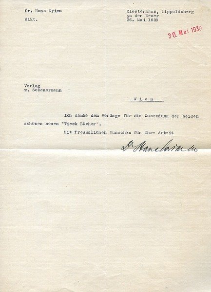 Grimm, Hans, Schriftsteller (1875-1959).