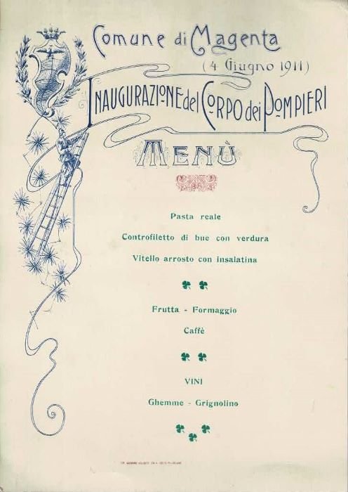 4 giugno 1911. Inaugurazione del Corpo dei Pompieri. | Livres anciens et modernes | [Menu Originale D'Epoca - Magenta]