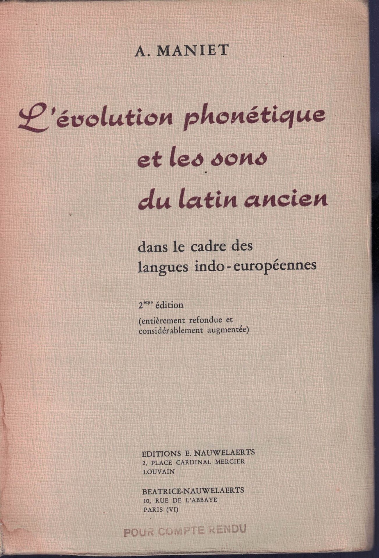 A. Maniet. L'Évolution phonétique et les sons du latin ancien dans le cadre des langues indo-européennes : . 2e édition