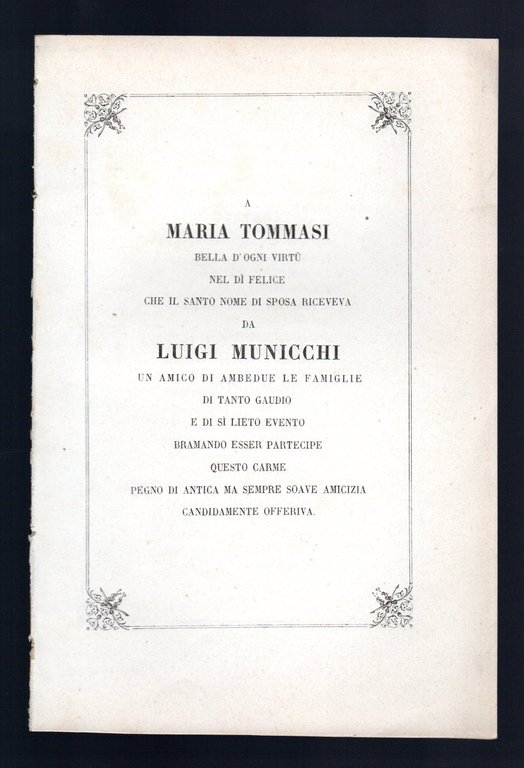 A Maria Tommasi bella d'ogni virtù del dì felice che il santo nome di sposa riceveva da Luigi Municchi