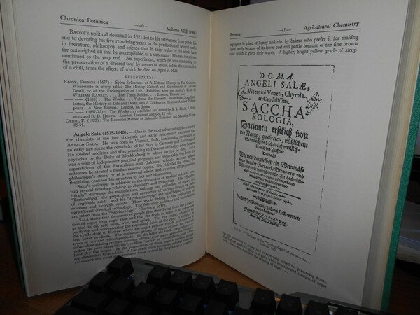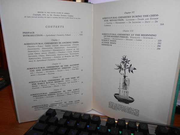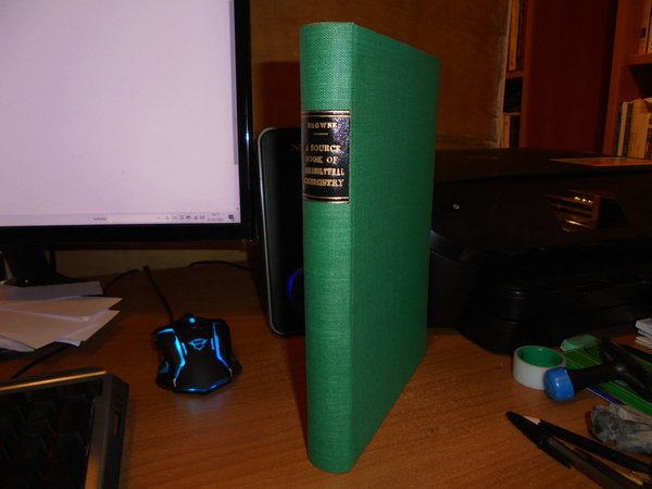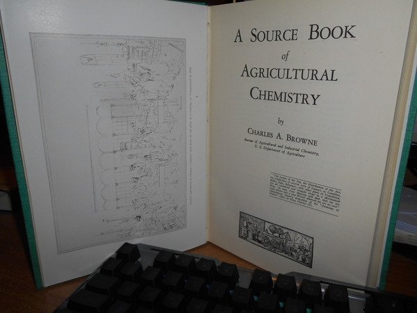 by CHARLES A. BROWNE. Waltham, Mass., U.S.A. Published by the Chronica Botanica Company, 1944. A Source Book of Agricultural Chemistry. In-8°, tela verde con titolo in oro entro tassello al dorso. x, 290 pp. con alcune illustrazioni n.t. Ottimo esemplare. Uff. C - I - 6 - 2