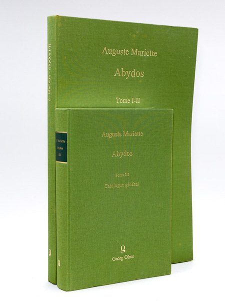 Abydos. Description des fouilles exécutées sur l'emplacement de cette ville (3 Tomes - Complet) Tome I : Ville antique - Temple de Séti ; Tome II : Temple de Séti (Supplément) - Temple de Ramsès - Temple d'Osiris - Petit Temple de l'Ouest - Nécropole ; Tome III : Catalogue général des monuments d'Abydos découverts pendant les fouilles de cette ville