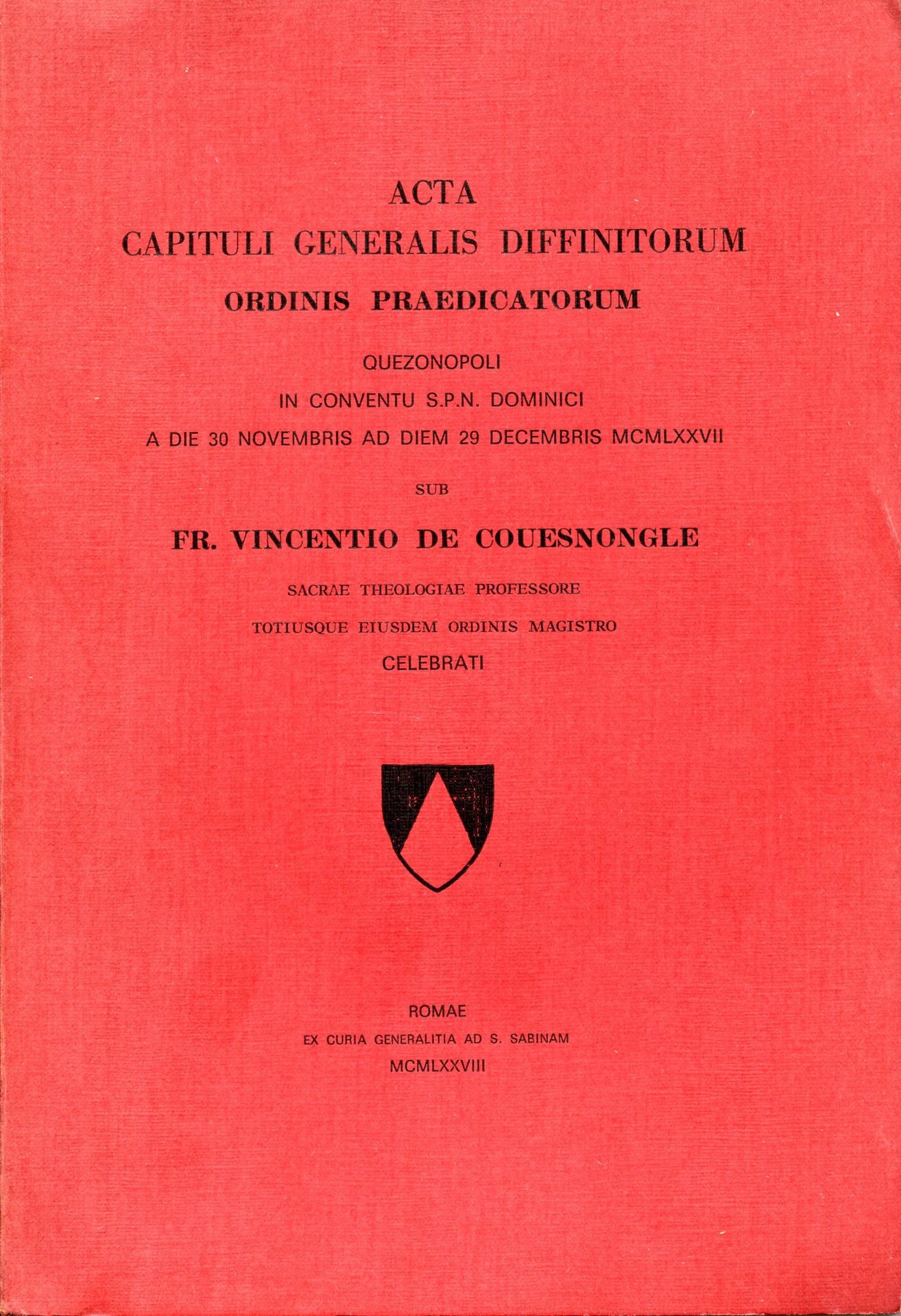 Acta capituli generalis diffinitorum Ordinis Praedicatorum Quezonopoli in conventu S. P. N. Dominici a die 30 Novembris ad diem 29 Dicembris 1977