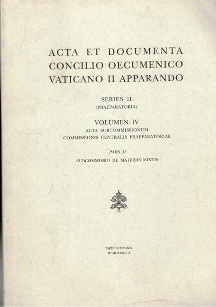 Acta e documenta concilio oecumenico Vaticano II apparando. Series II (preparatoria) volumen IV acta subcommissionum commissionis centralis praeparatoriae pars II subcommissio de materiis mixtis.