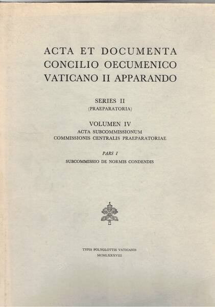 Acta e documenta concilio oecumenico Vaticano II apparando. Series II (preparatoria) volumen IV acta subcommissionum commissionis centralis praeparatoriae pars I subcommissiode normis condendis.