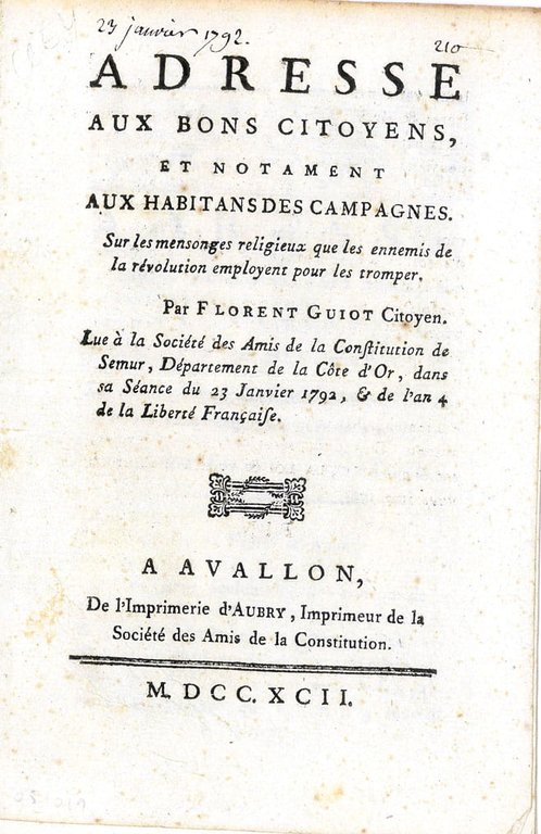 Adresse aux Bons Citoyens et notament aux habitans des campagnes, sur les mensonges religieux que les ennemis de la Révolution employent pour les tromper.