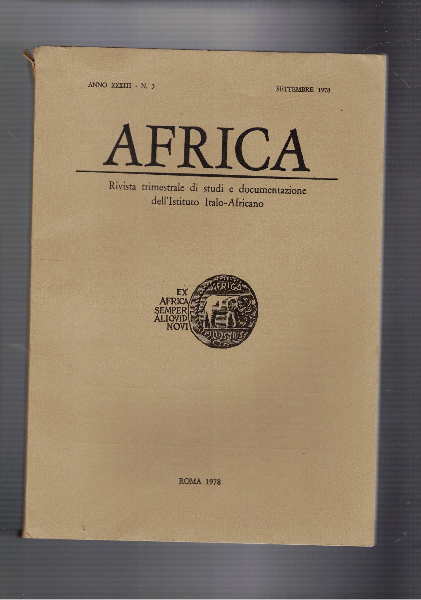 Africa. Rivista trimestrale di studi e documentazione dell'istituto Italo-Africano. Disponiamo dei n° 3 e 4 del 1978.