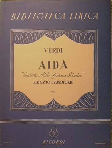 Atto I. Scena e romanza ' Celeste Aida '. - Collana Biblioteca lirica per canto e pianoforte - in 4° - pp.6 - Brossura editoriale - In buone condizioni - Piccole macchiette alla brossura. - N.P.42488