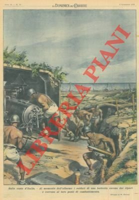Al momento dell'allarme i soldati di una batteria escono dai ripari e corrono ai loro posti di combattimento.