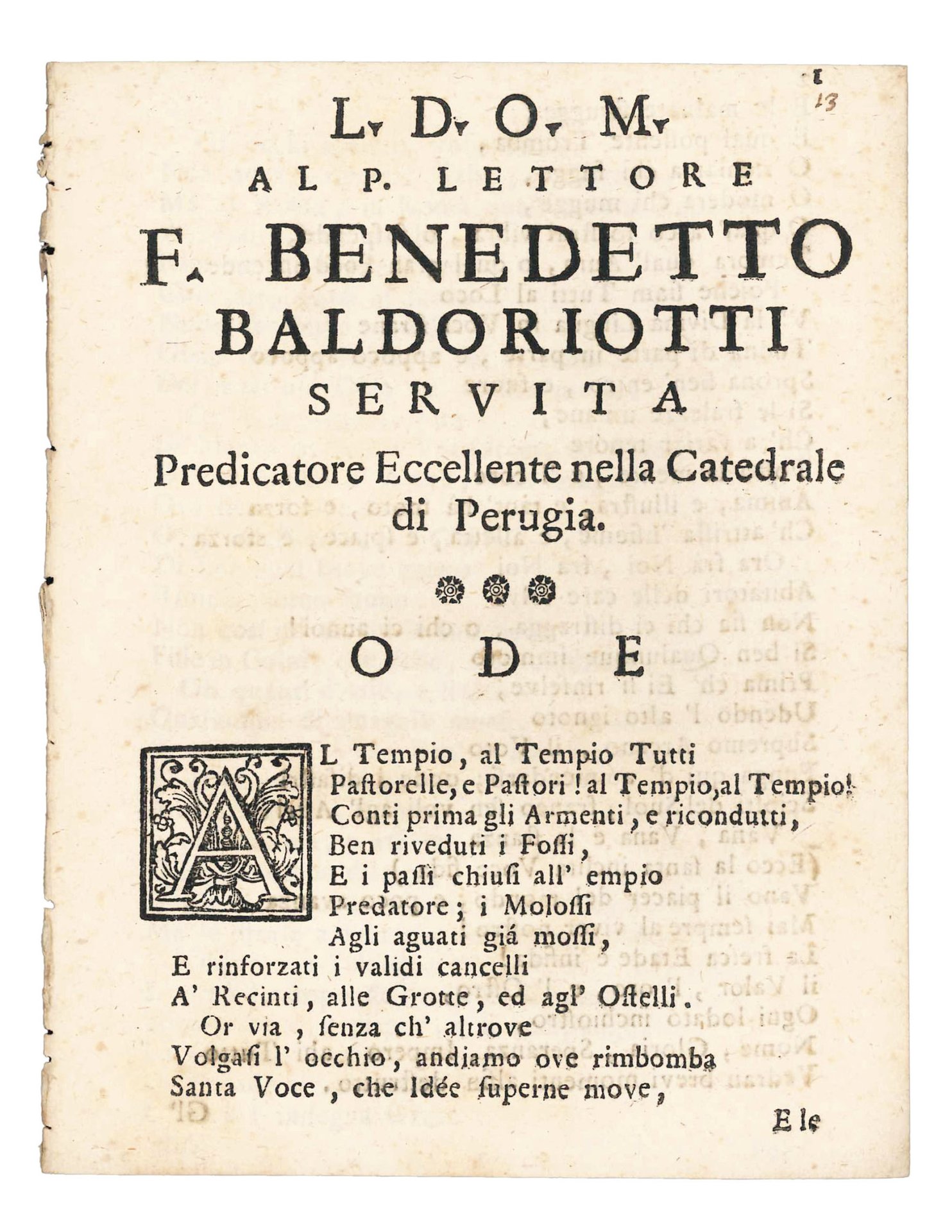 Al p. lettore f. Benedetto Baldoriotti servita predicatore eccellente nella Catedrale di Perugia.