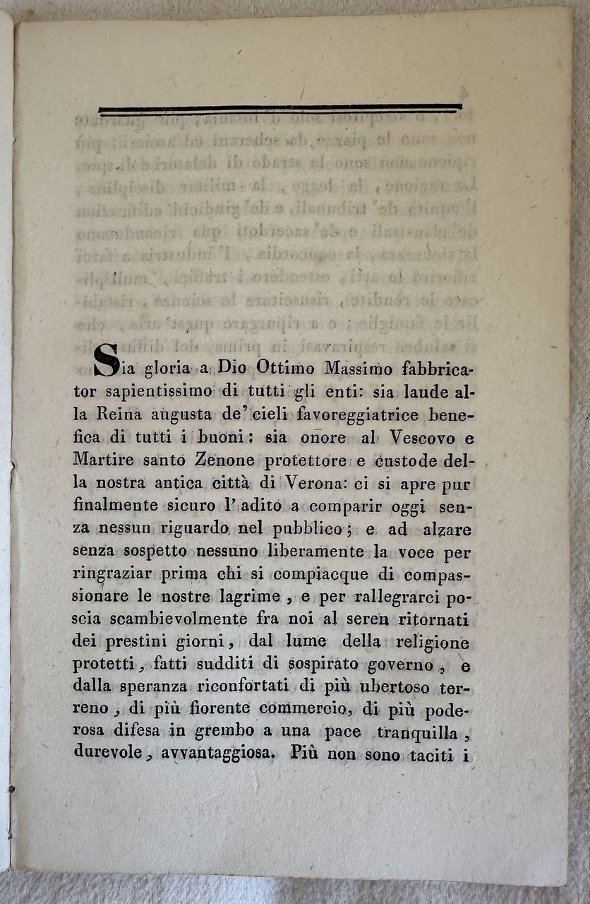 AL POPOLO VERONESE ORAZIONE DEL P. G. PELLEGRINI F. FERD. ROMANENGO O. P. | Livres anciens et modernes | Giuseppe Luigi Pellegrini (1718-1799)