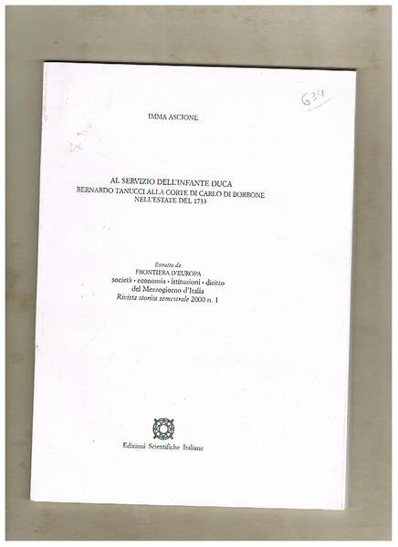 Al servizio dell'infante Duca Bernado Tanucci alla Corte di Carlo di Borbone nell'estate del 1733. Estratto da "Frontiera d'Euopoa: società - economia - istituzioni - diritto del Mezzogiorno d'Italia", rivista storica semestrale, n° 1 del 2000.