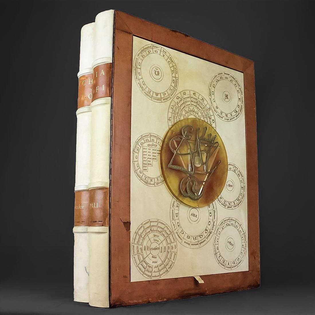 Questa maestosa edizione è composta da 10 tavole originali in pergamena a tiratura limitata firmati e numerati dall'artista. Con la sua grande ed importante dimensione di circa 80 cm di altezza il cofanetto contenitore dell'opera è anch'esso una vera e propria esclusiva ed unica opera in pieno stile Daliniano. Nella parte anteriore del cofanetto in pelle e pergamena è posizionata una ruota alchemica con un triangolo rovesciato contenente liquido argentato, mentre un disco ambrato superiore riporta la firma e il simbolo di Salvador Dalì. Dimensioni del cofanetto: 80 x 60 cmDimensioni delle tavole: 57,5 x 77,5 cm