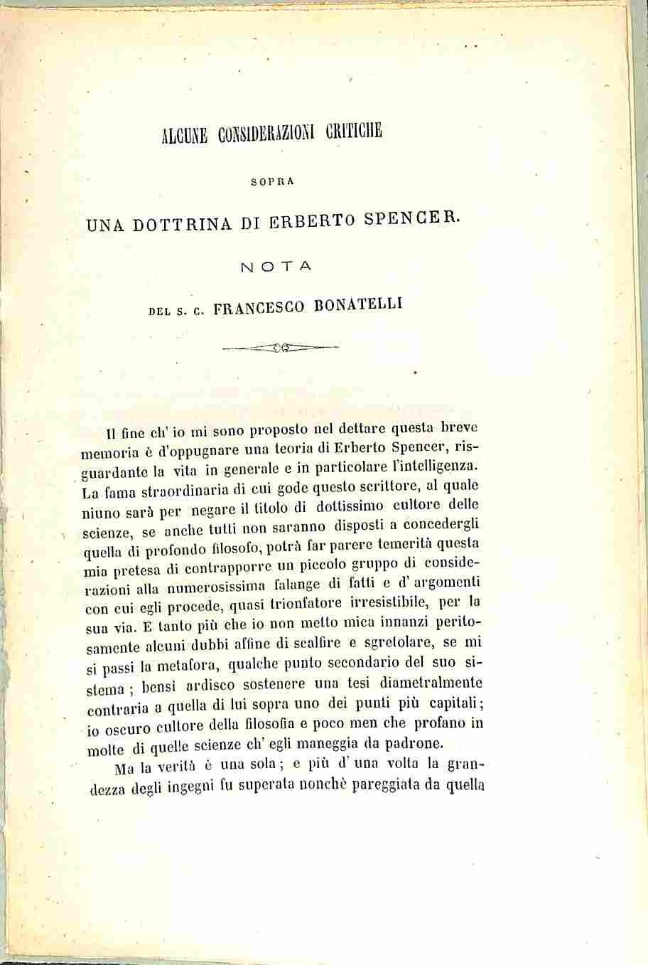 Alcune considerazioni critiche sopra una dottrina di Erberto Spencer