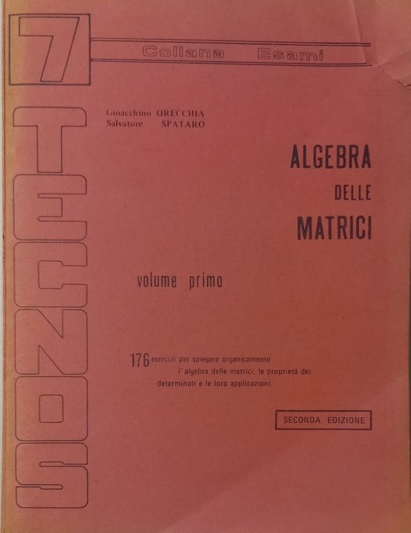 Copertina scolorita in parte sul dorso, un piccolo strappo di un paio di cm sull'angolo supertiore della copertina, timbratura sul frontespizio e sull'ultima pagina. Edizione 1980.MATEMATICA Buono (Good) .