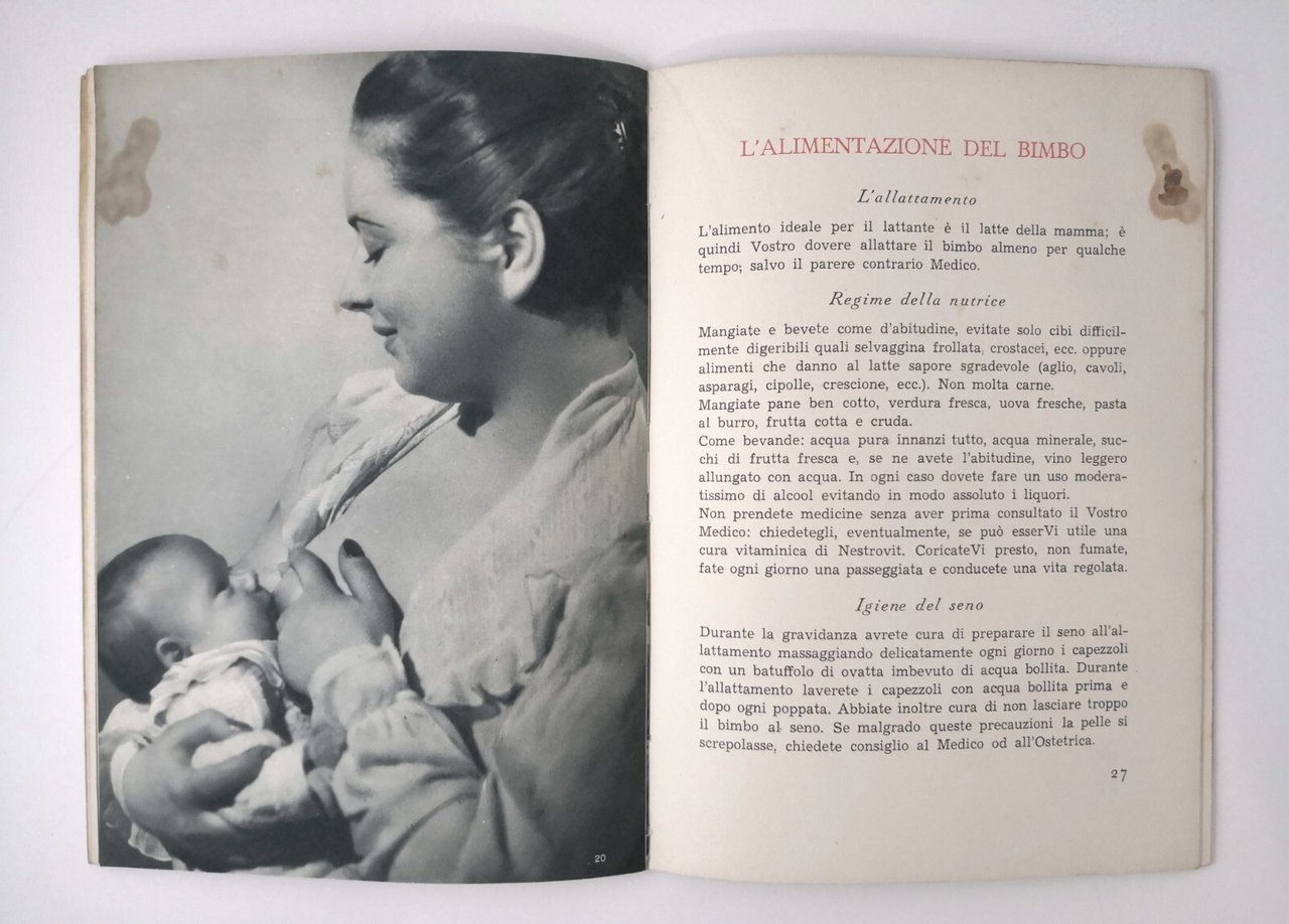 ALLE GIOVANI MAMME Nestlè La Prealpina libro pubblicitario anni '50 bambini