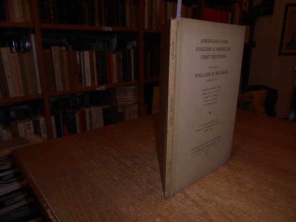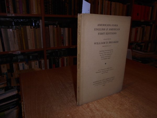 WILLIAM BREAKER. New York, American Art Association Anderson Galleries, 1937. Americana Rara English & American First Editions. In-8°, cartoncino edit. con titoli sul piano e al dorso. 79 pp. con facsimili nel testo. Ottimo stato con testo in inglese. Uff. B - II - 3