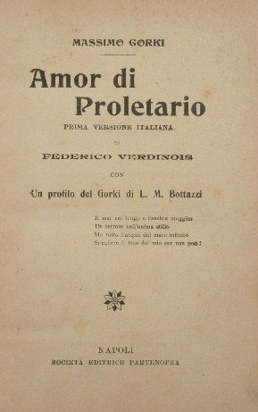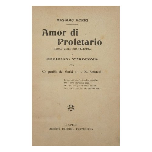 Prima versione italiana di Federico Verdinois. Con un profilo del Gorki di L.M. Bottazzi - in 16° - pp.151 - Mezza pelle con titolo e fregi in oro al dorso