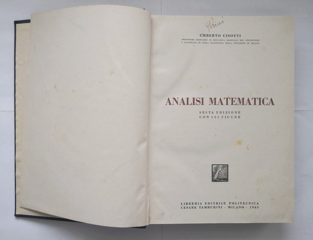 ANALISI MATEMATICA di Umberto Cisotti 1945 Libreria Editrice Politecnica Libro