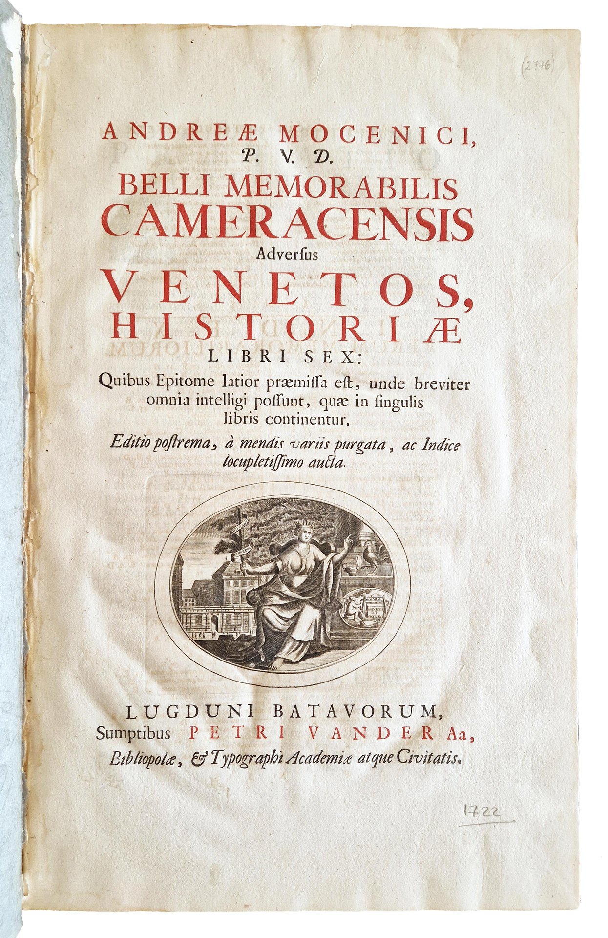 Andreae Mocenici, P.V.D., Belli memorabilis Cameracensis adversus Venetos historiae libri sex […]. Editio postrema, a nendis variis purgata, ac Indice locupletissimo aucta.