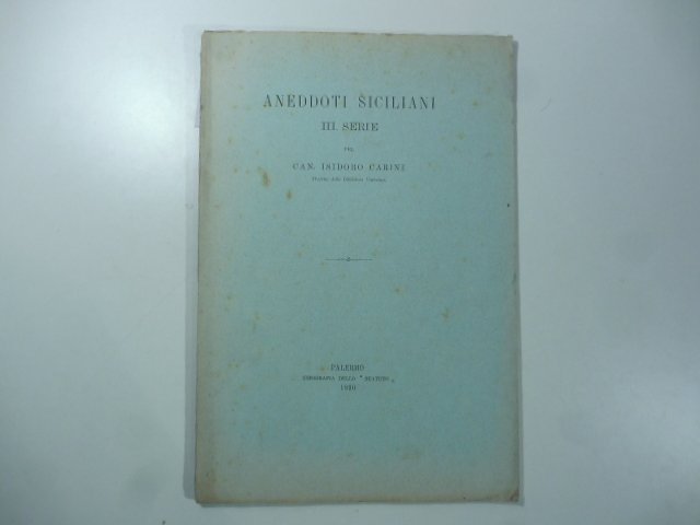 In 8 (cm 19 x 27), pp. 31. Brossura editoriale. Estratto dall'Archivio storico siciliano, con numerose e disparate note di storia siciliana come lo stesso autore scrive nella breve premessa della I serie indirizzata a Giuseppe Lodi: 'Rimescolando le mie carte, vi ho ritrovato una gran quantita' di Appunti presi per lavori che, probabilmente, non faro' mai piu'. Pensando che possano servire a qualche cosa, li comincio a mandare a Lei; e, se ella non li stima inutili, li pubblichi pure nell'Archivio storico: se no, li riponga nel cestino. Siccome non ho tempo, non intendo neppure serbare alcun ordine cronologico.'. Ad esempio: Epigrafe onoraria di un correttore di Sicilia rinvenuta in Roma; Due frati minori siciliani ricordati da Franco Sacchetti; Lettere inedite d'illustri siciliani; ecc.