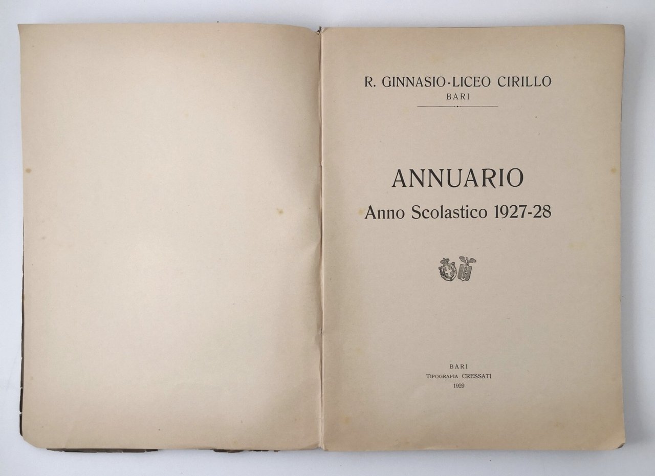 ANNUARIO ANNO SCOLASTICO 1927-28 R. Ginnasio-Liceo Cirillo, Bari.