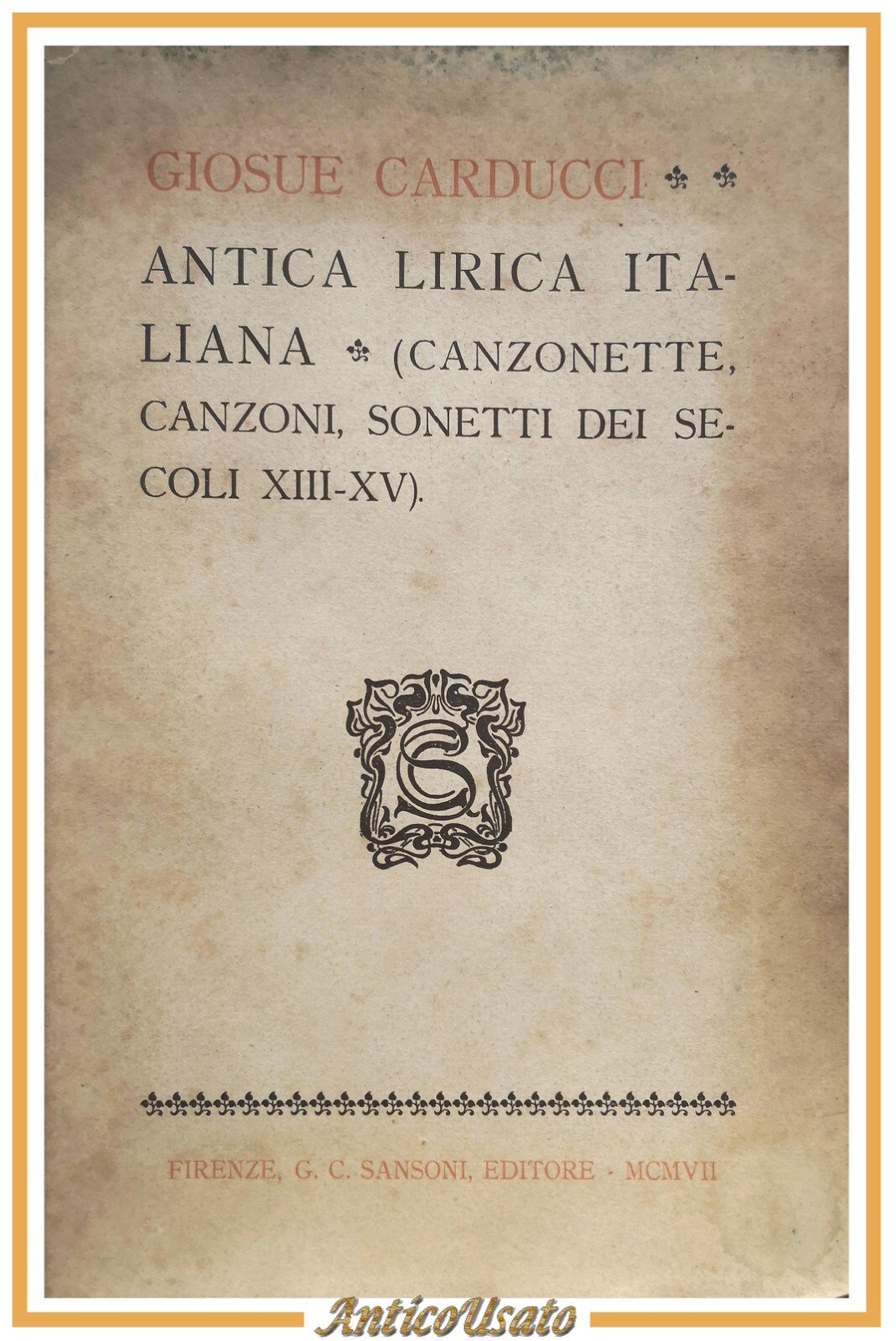 ANTICA LIRICA ITALIANA di Giosue Carducci 1907 Sansoni Libro sonetti secoli XIII