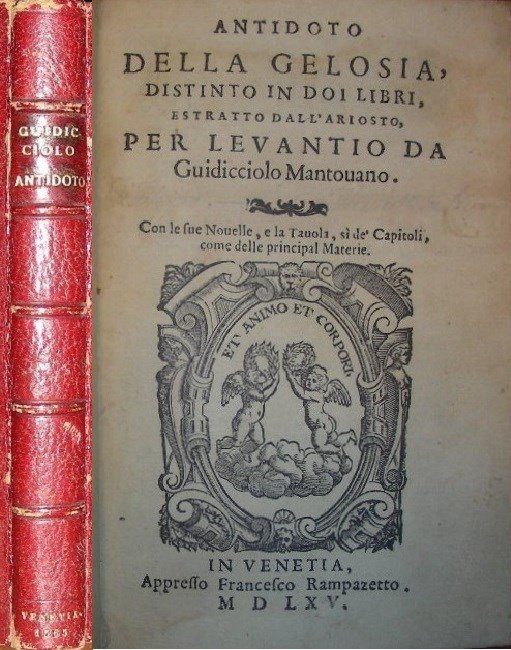 ANTIDOTO DELLA GELOSIA distinto in doi libri estratto dall'Ariosto per. Con le sue Novelle, e la Tavola sì dè Capitoli come delle principali materie.