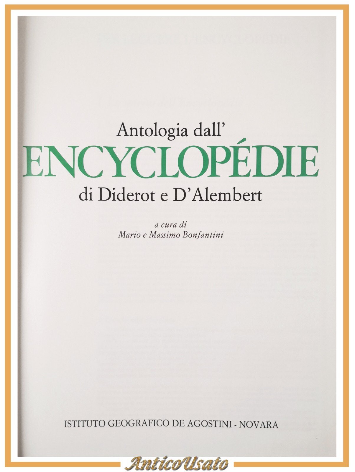 ANTOLOGIA DALL'ENCYCLOPEDIE DI DIDEROT E D'ALEMBERT a cura di Mario e Massimo Bonfantini.