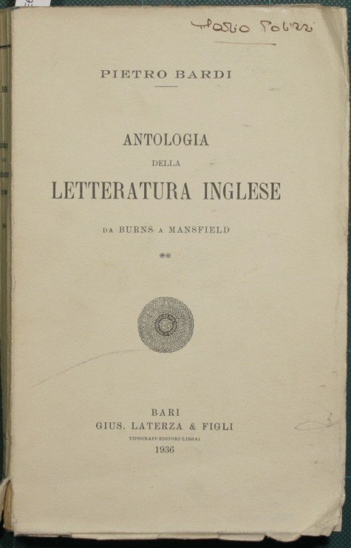 Da Burns a Mansfield - in 8° - pp.294 - Brossura editoriale - Molti fogli ancora chiusi - Strappetti senza mancanze al dorso, firma a penna alla brossura - Testi in lingua inglese